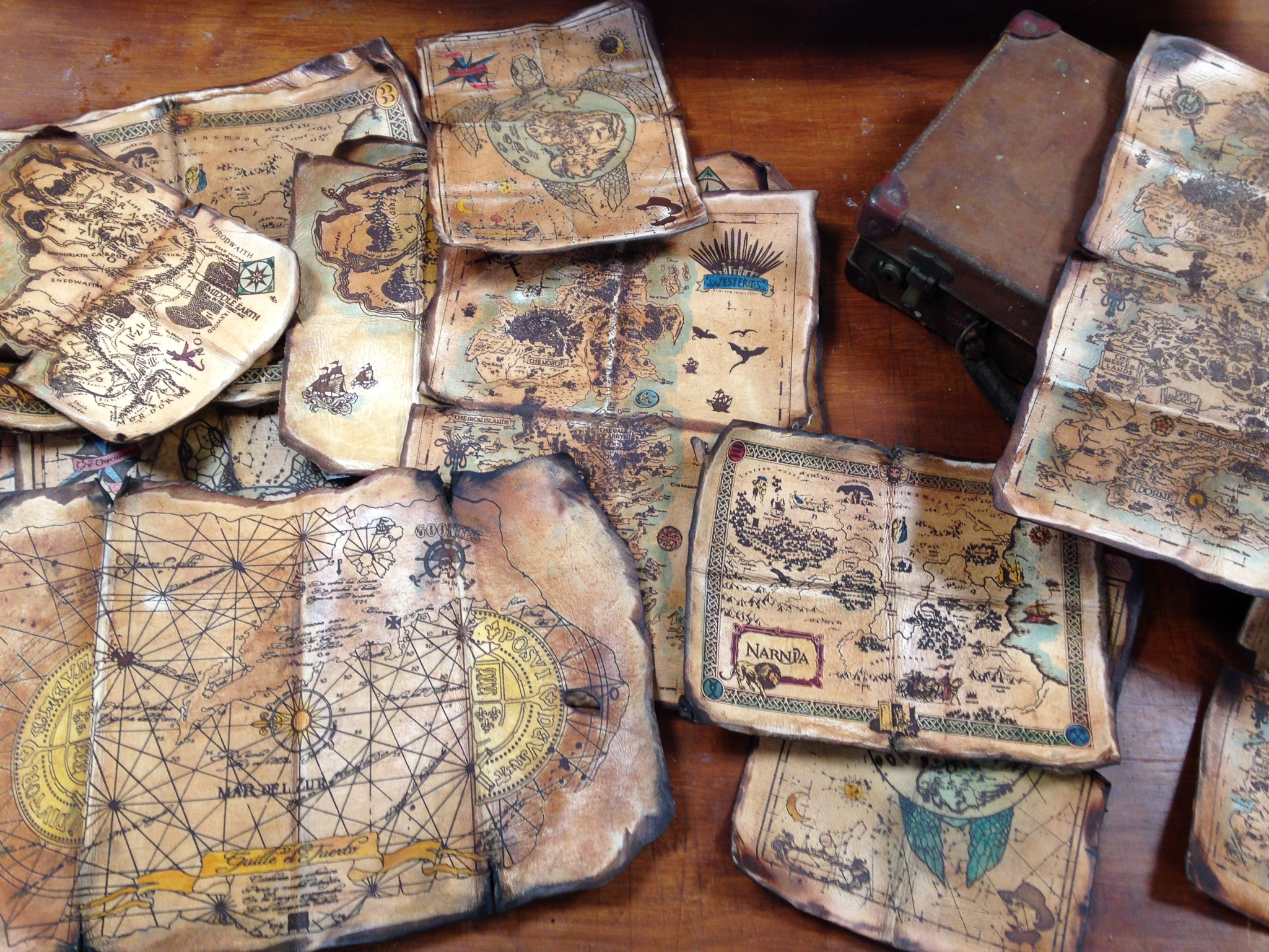 After conquering my fear of engraving leather I jumped in the deep end by designing and redrawing maps finishing them in an antique and distressed style.
