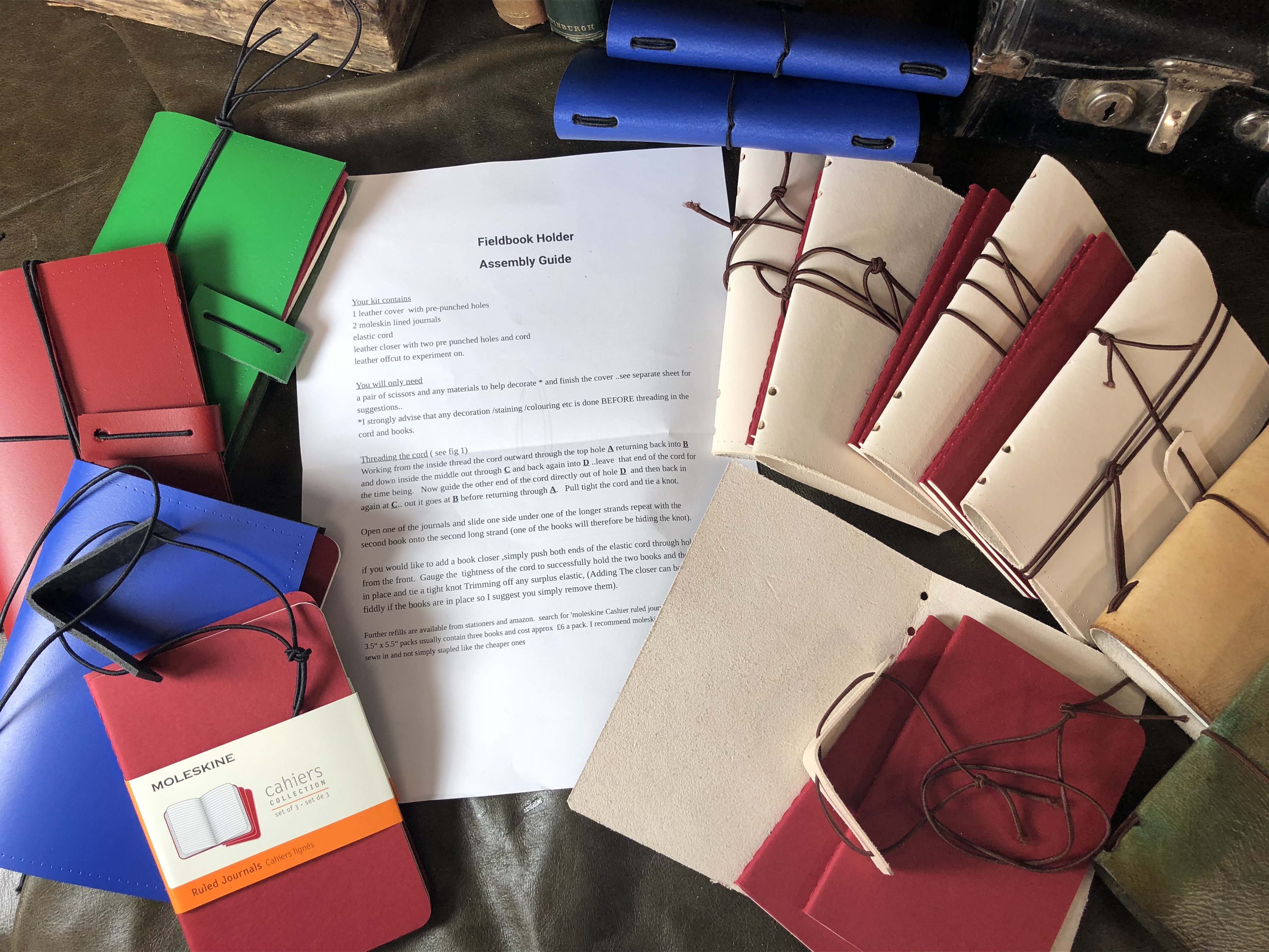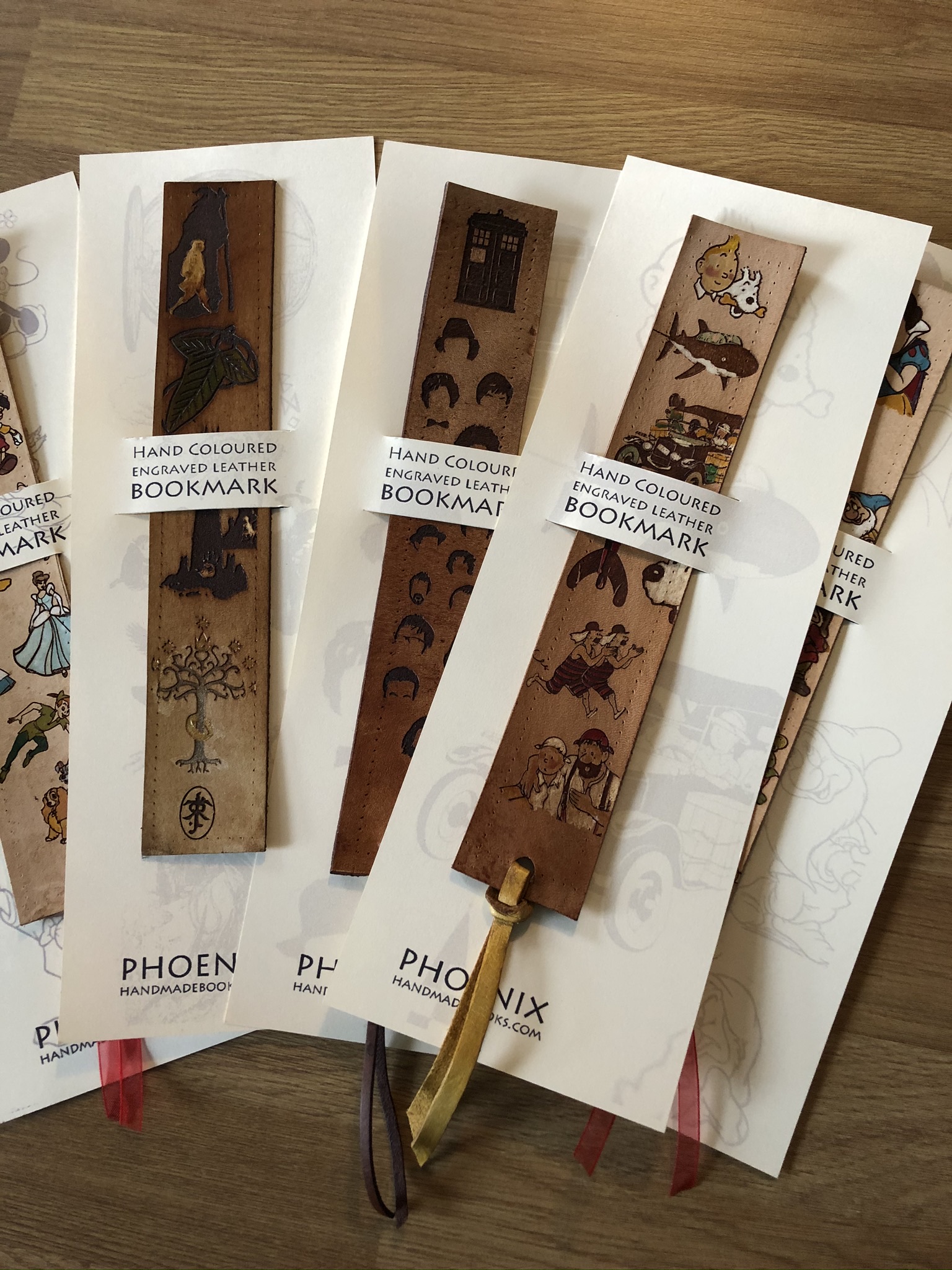 Leather maps, card holders, passports and bookmarks.